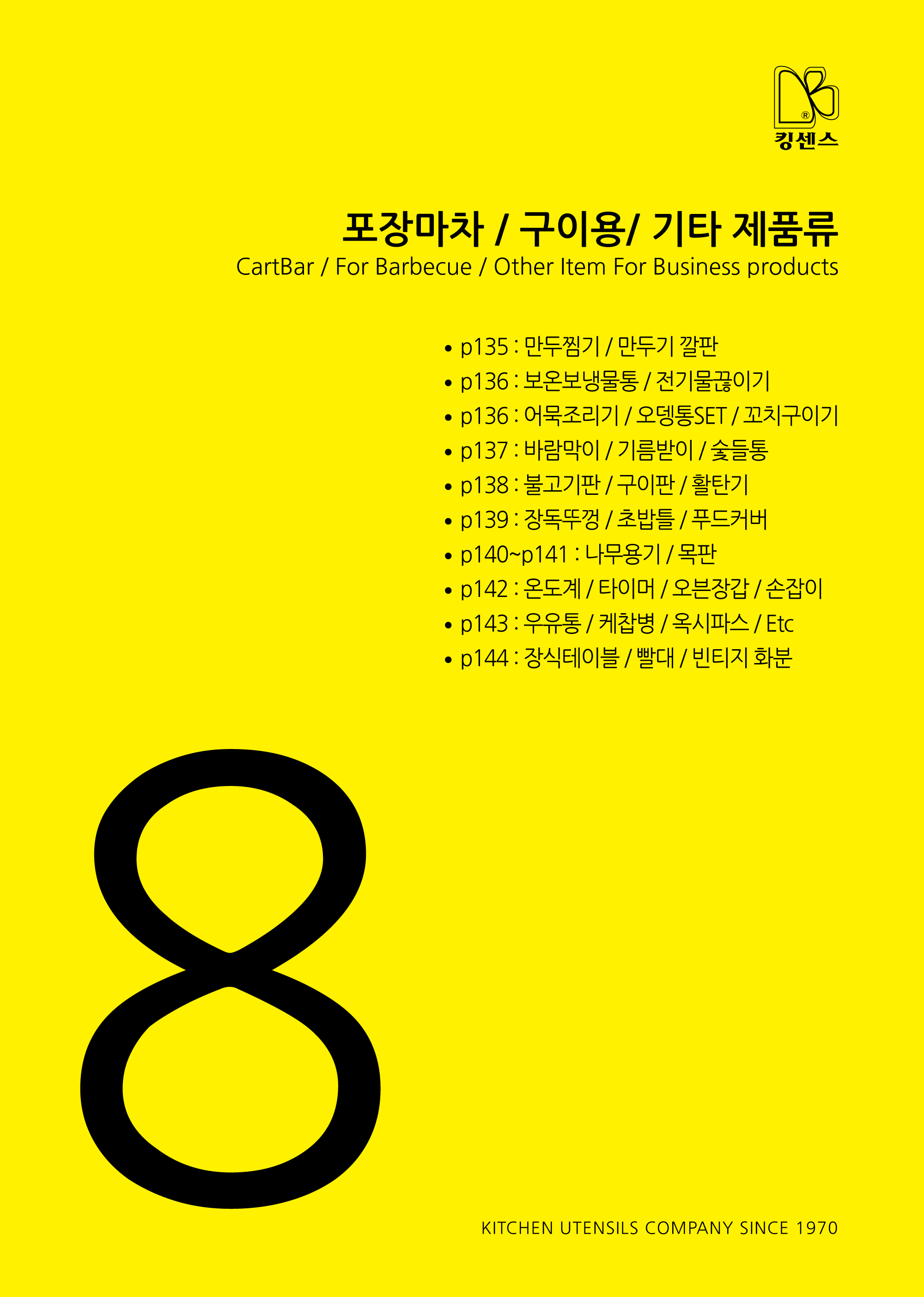 [1Àå] º£½ºÆ®¼¿·¯ / ½ºÅ׵𼿷¯ / ½Å»óǰ [2Àå] Å×À̺í¿þ¾î / ĿƲ·¯¸® Á¦Ç° [3Àå] ÁÖ¹æ¿ëǰ / Á¶¸®±â±¸ Á¦Ç° [4Àå] ¾÷¼Ò¿ë / ´Üü±Þ½Ä Á¦Ç° [5Àå] Ä¿ÇÇ / ¹Ù / ÇÇÀÚ / Á¦»§ / Ä·ÇÎ Á¦Ç° [6Àå] °ÇÁö±â / ¹Ù±¸´Ï / Áý°Ô Á¦Ç° [7Àå] ¿î¹Ý·ù / ÈÞÁöÅë Á¦Ç° [8Àå] Æ÷À帶Â÷ / ±¸ÀÌ¿ë / ±âŸÁ¦Ç°